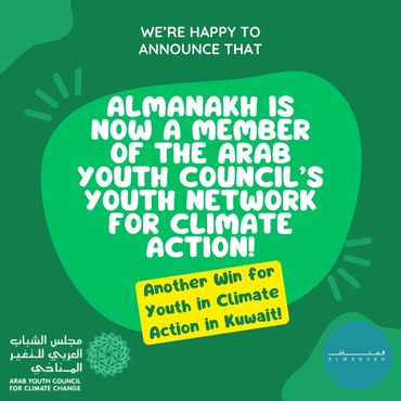 AlManakh conducted Kuwait's first Local Conference of Youth (LCOY) under the umbrella of the UNFCCC's YOUNGO events to raise climate awareness and hear youth demands for climate action. Event on September 22nd 2024 in Kuwait at the UN House in partnership with Seeds Academy, UN, and AIESEC.